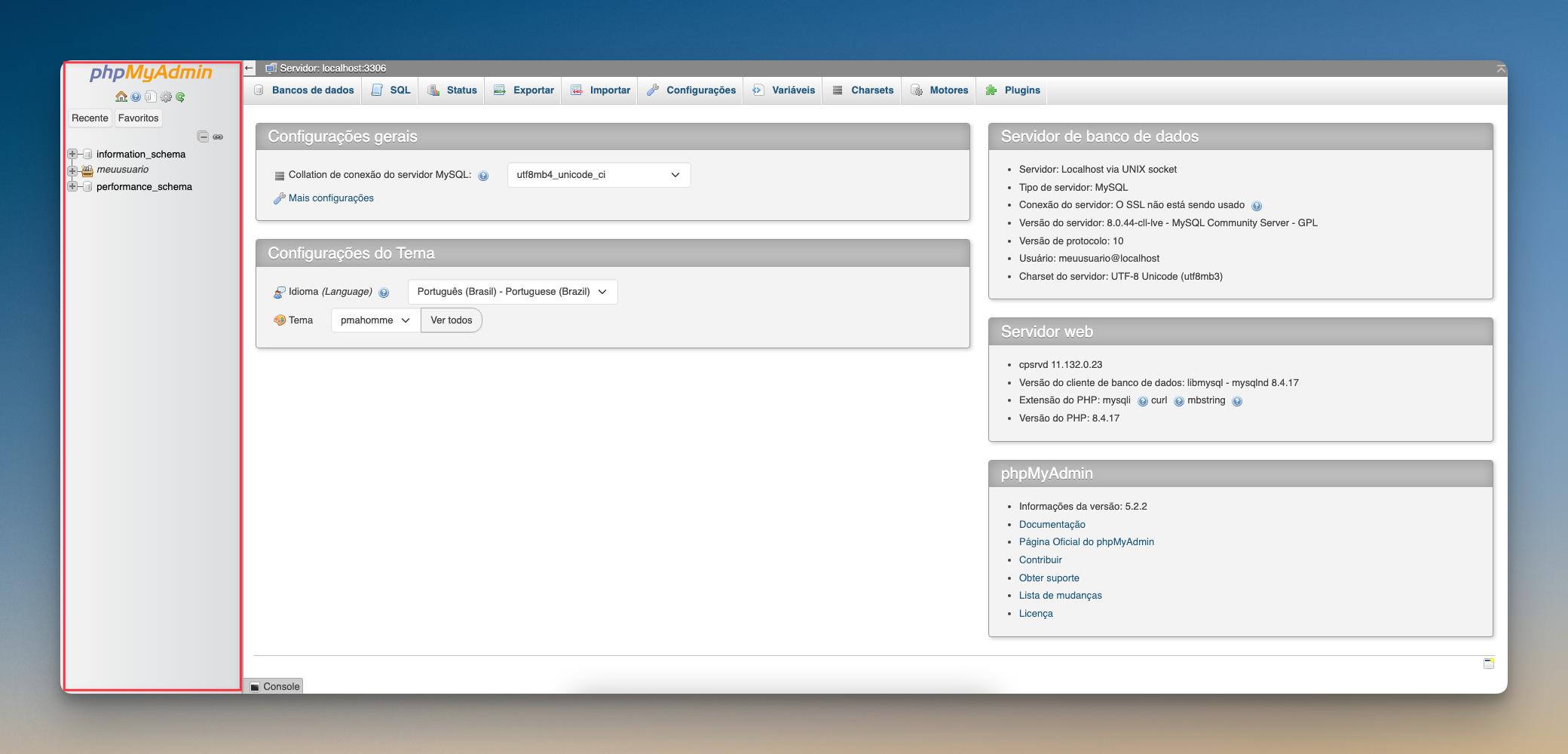 O phpMyAdmin é uma poderosa ferramenta para gerenciar o conteúdo de seu banco de dados. Aqui estão os passos para acessar o phpMyAdmin: