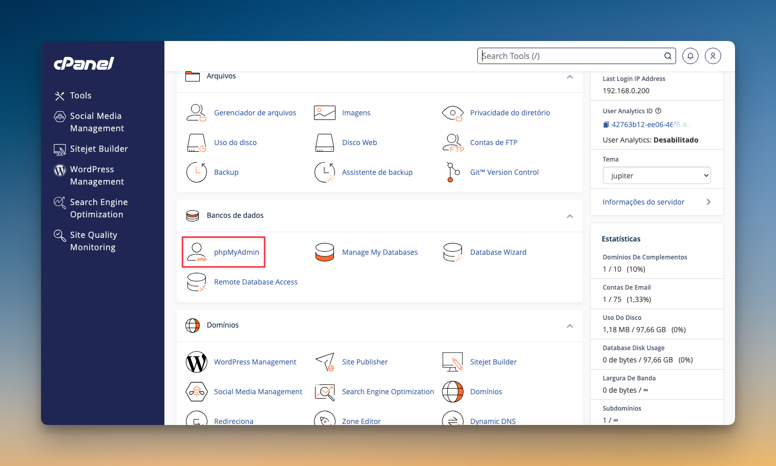 ℹ️ Como Acessar o phpMyAdmin no cPanel