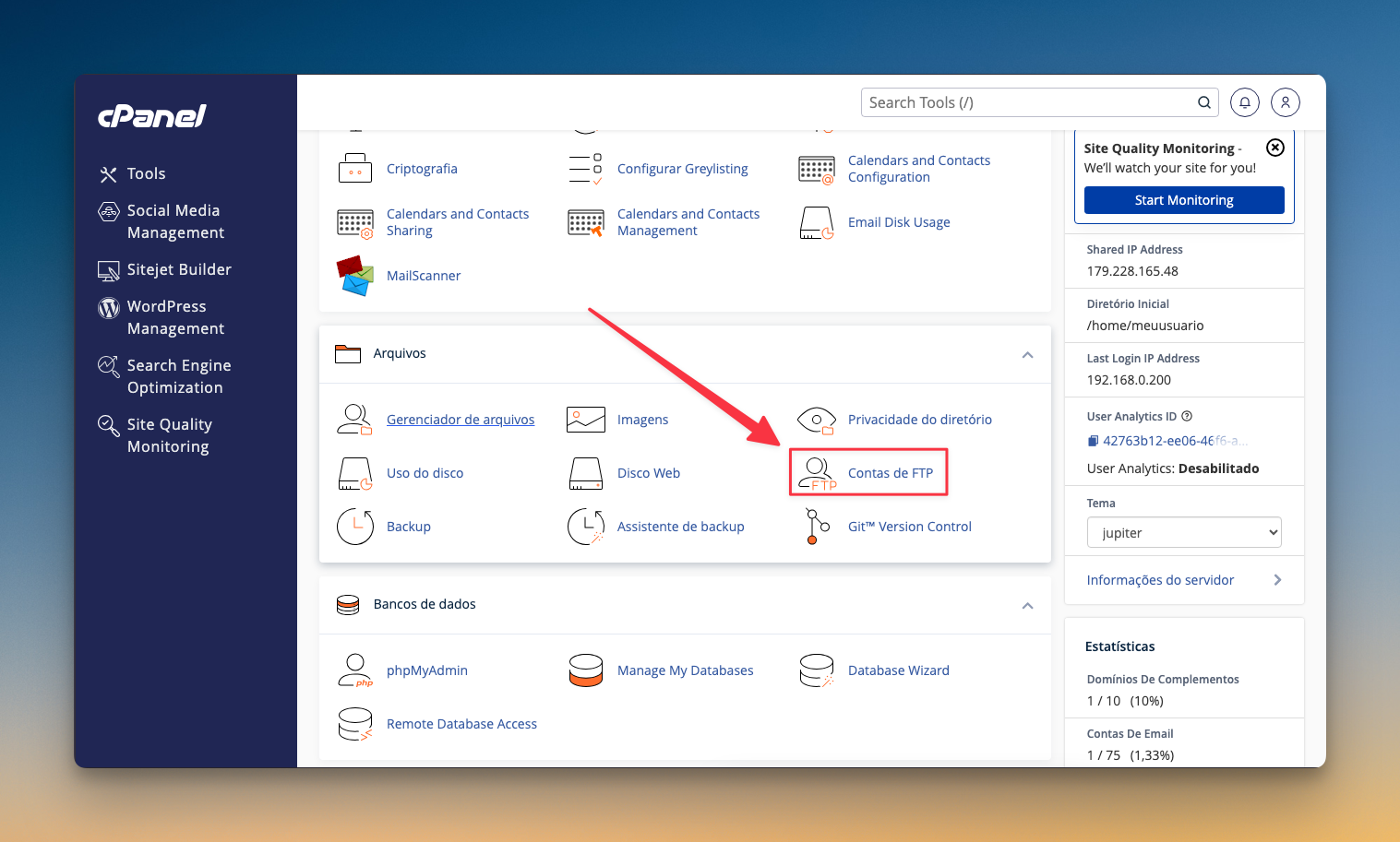 📂 Como Encontrar Detalhes de FTP no cPanel