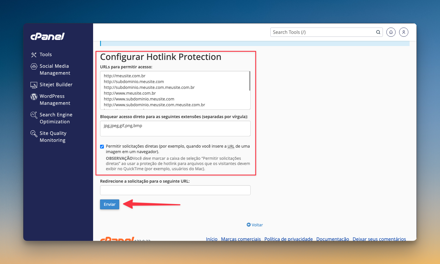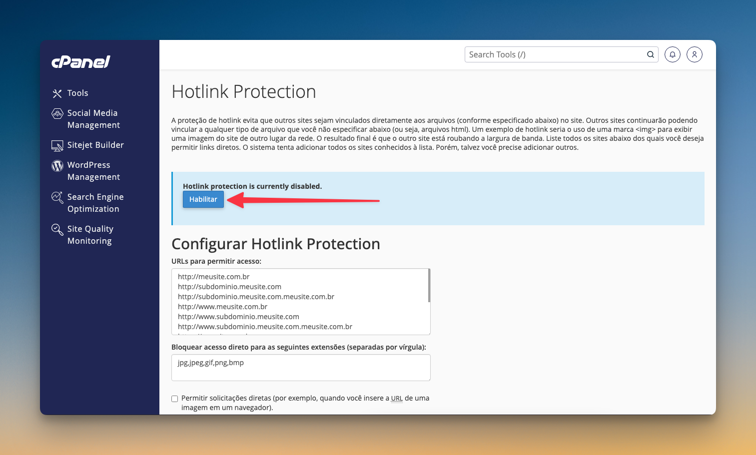 Agora você protegeu as suas imagens de serem "linkadas". Apenas certifique-se que todos os seus domínios adicionais estão na lista HotLink.